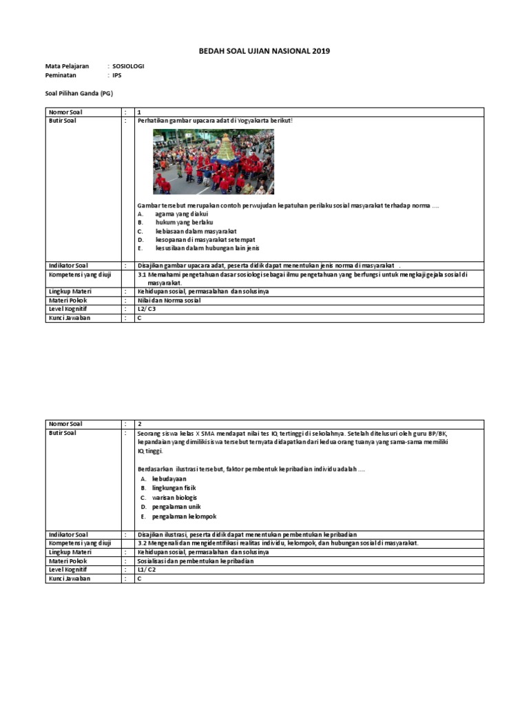 Soal ununbk sosiologi dan kunci jawaban lengkap dengan pembahasan tahun 20192020 admin persembahkan untuk siswa sma yang akan menghadapi ujian nasional berbasis komputer. Soal tentang masyarakat multikultural - Soal sosiologi yang akan dibagikan kali ini adalah soal sosiologi tentang masyarakat multukultural. Tingginya angka kelahiran dan kematian c.