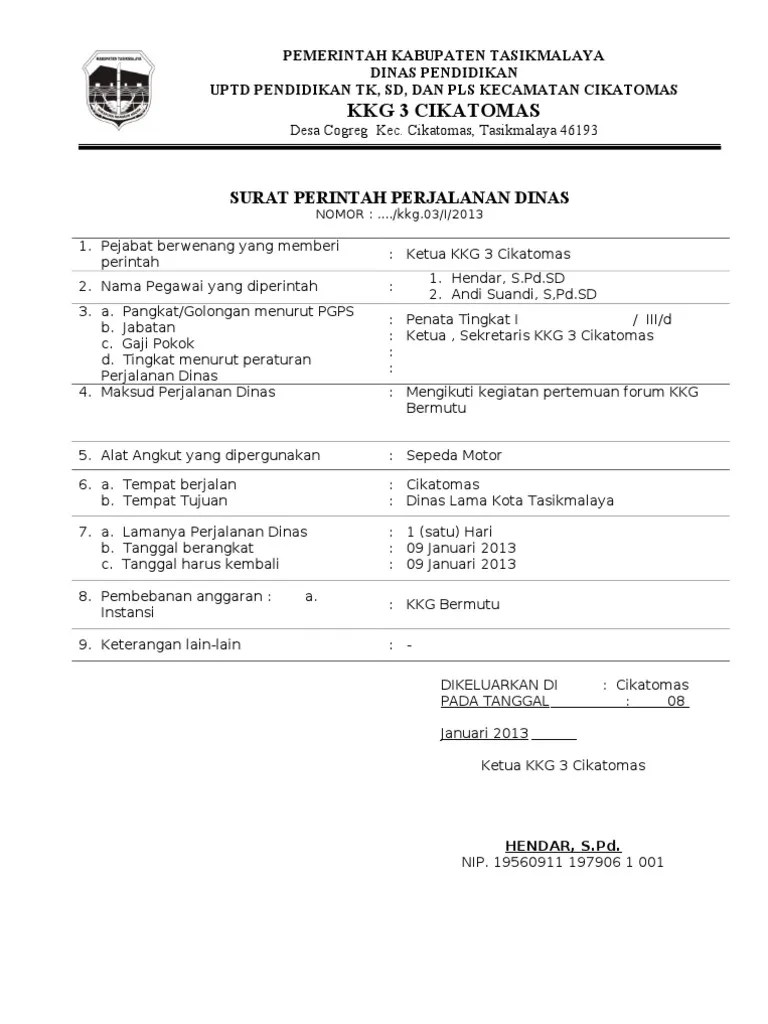 Contoh Surat Perintah Perjalanan Dinas Sppd Yang Benar