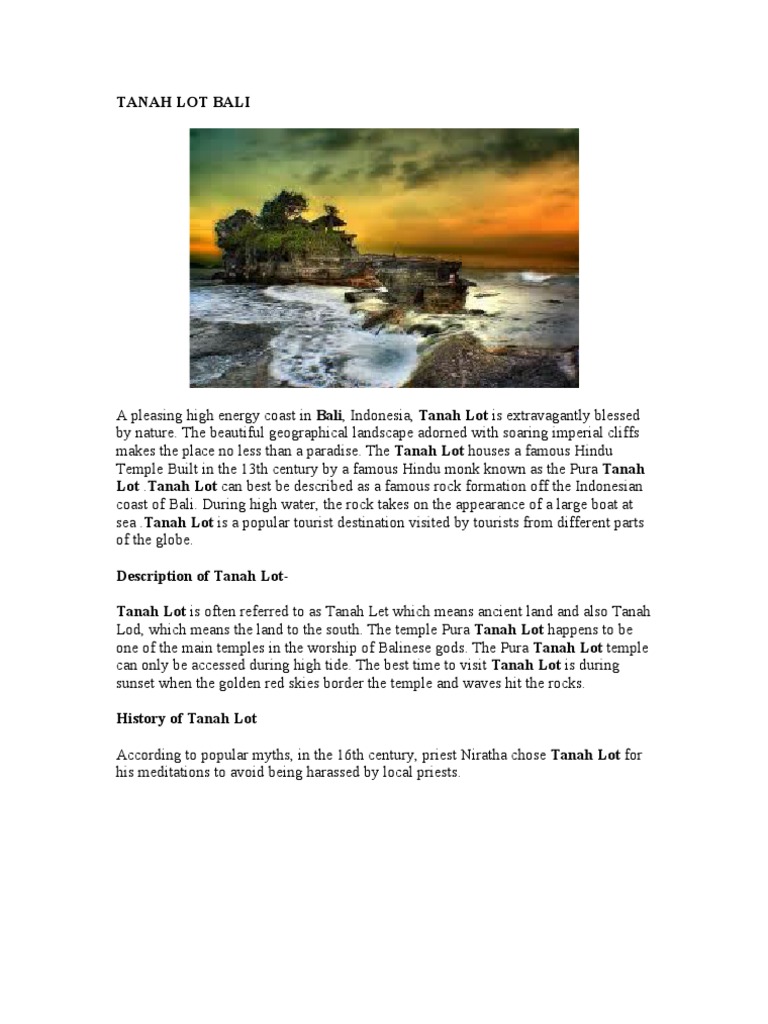 He is a male cat that I found on the roadside. Deskripsi tempat wisata di Bali dalam Bahasa Inggris This island is been well-known around the world and one of islands in Indonesia.